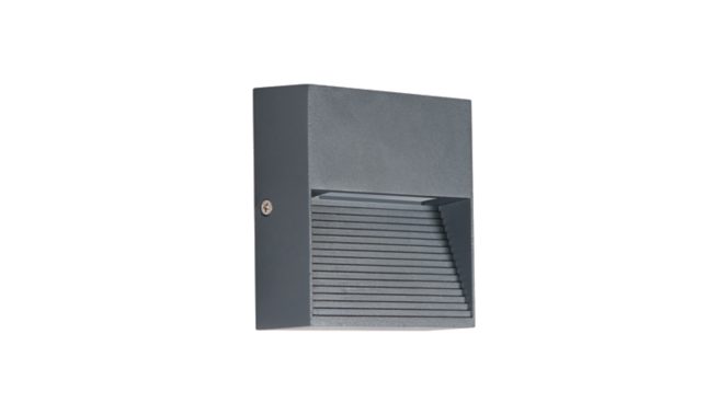 Grey powder coated aluminium fixture. Sleek design. Warm white light