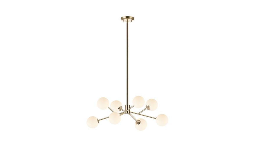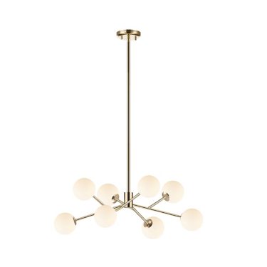 DIVINE series of fixtures, with their contemporary designs, are a perfect way to bring about harmony between the décor and the light fixtures of your house. This particular fixture comes with 8 matte white opal glasses, which will ooze out style when lit, and be a style statement on its own when not lit up.