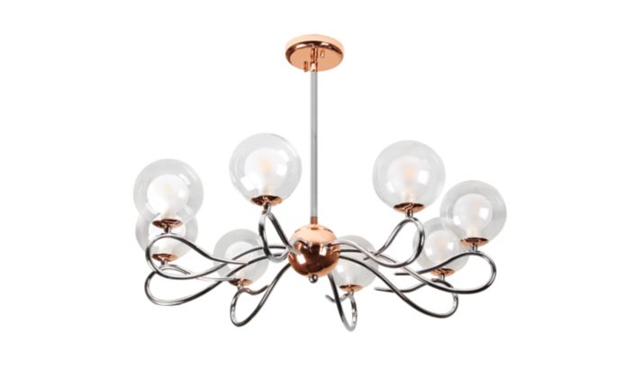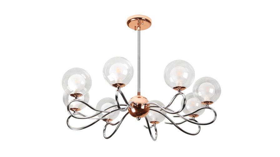 Premium borosilicate glass for sparkling light. Premium aesthetic elegant chrome & red copper finish